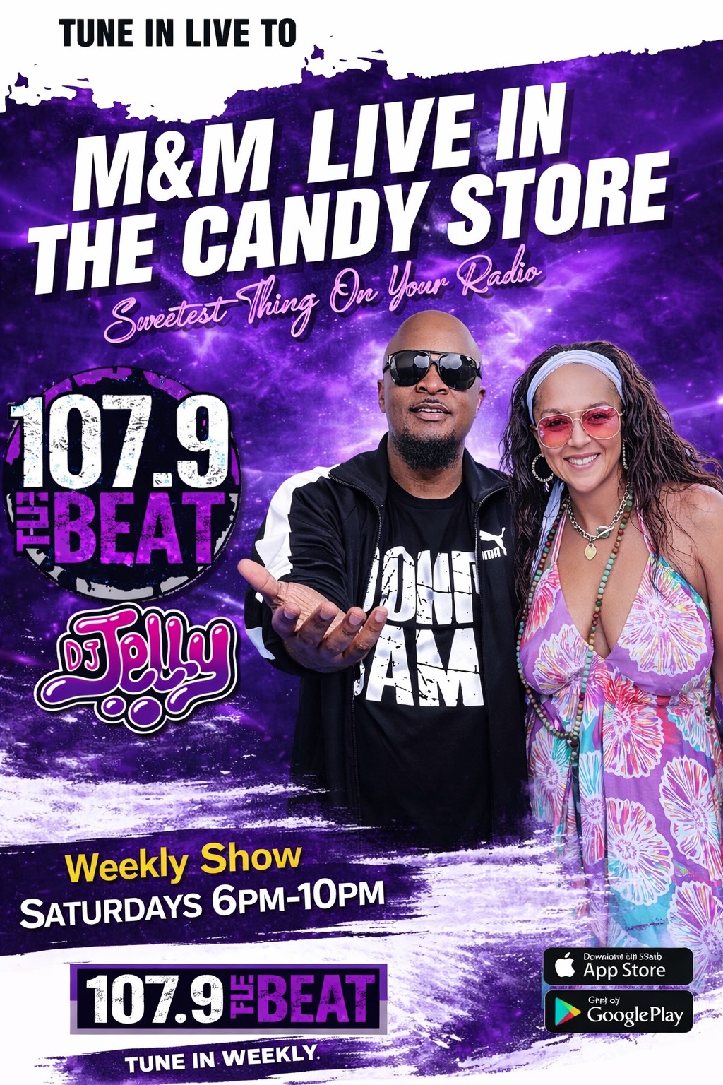 Catch the full show every Saturday from 6PM–10PM, with the DJ Jelly Mixshow takeover from 8PM–10PM, only on 107.9 The Beat — the sweetest thing on your radio.